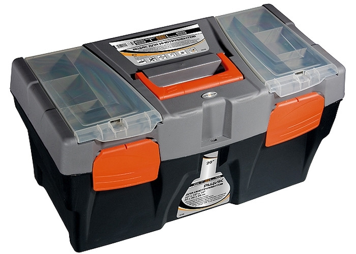 Инструментальный ящик с дополнительными секциями. Ящик размером 59х30х30см (24") изготовлен из полипропилена, имеет два встроенных органайзера с крышкой и съемный 3-х секционный лоток. Предназначен для хранения и транспортировки инструмента, расходных материалов и крепежных изделий, а также любых сходных по габаритам бытовых товаров.